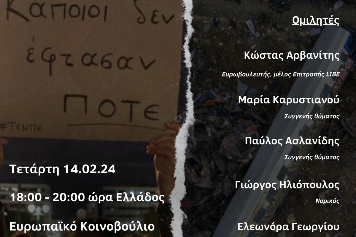 Εκδήλωση: Τέμπη-εκτροχιασμός του κράτους δικαίου