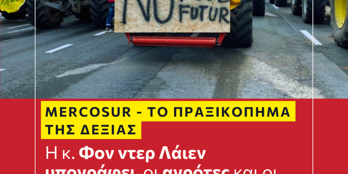Πρόκειται για μια επιλογή που προσβάλλει άμεσα τη δημοκρατική λειτουργία, που παραμερίζει ουσιαστικά τη λαϊκή βούληση. Παράλληλα, ανοίγουν τον δρόμο για την αθρόα εισαγωγή αγροτικών προϊόντων αμφίβολης ποιότητας—παραγόμενων με φυτοφάρμακα που στην Ευρώπη έχουν απαγορευτεί—και σε βάρος του οικοσυστήματος του Αμαζονίου, την ώρα που οι δικοί μας παραγωγοί ασφυκτιούν από τα υψηλά κόστη και τις επιβαρυντικές προδιαγραφές.