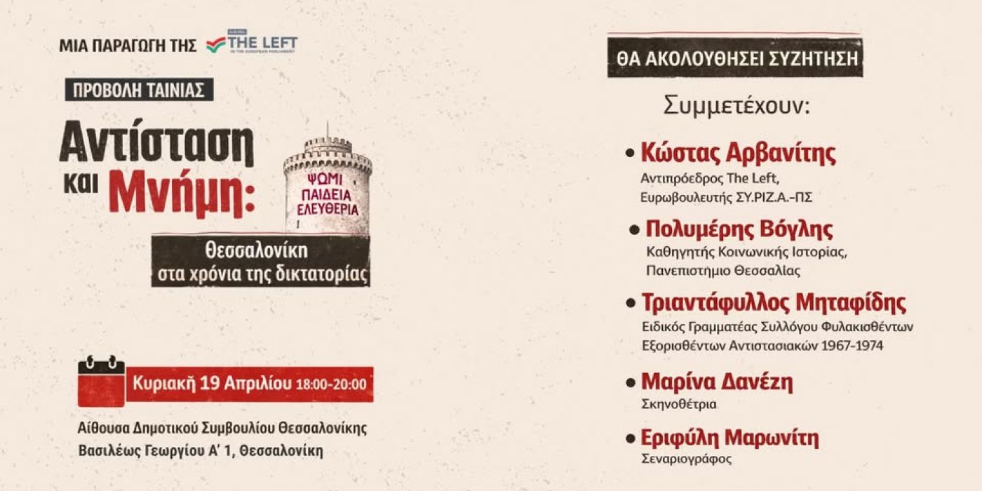 Πρώτη προβολή ντοκιμαντέρ: «Αντίσταση και Μνήμη: Θεσσαλονίκη στα χρόνια της δικτατορίας»-μια παραγωγή της The Left