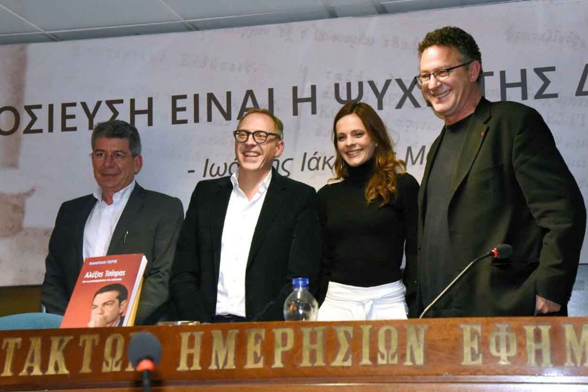 Fabien Perrier, Αλέξης Τσίπρας, αριστερά, Γιώργος Πλειός, Έφη Αχτσιόγλου