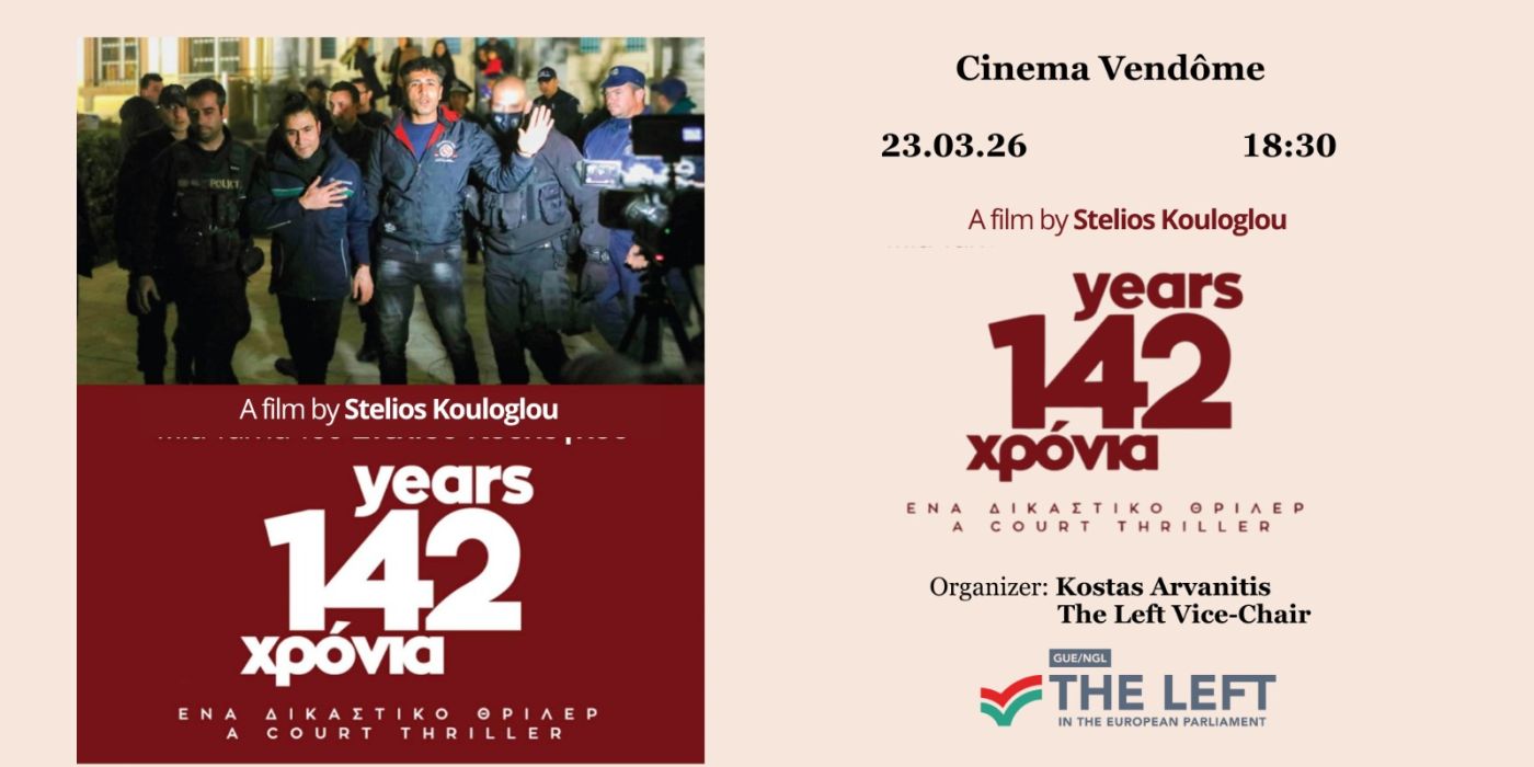 Το βραβευμένο ντοκιμαντέρ του Στέλιου Κούλογλου, «142 χρόνια», θα προβληθεί για πρώτη φορά στις Βρυξέλλες τη Δευτέρα 23 Μαρτίου 2026 στις 18:30 στον κινηματογράφο Cinema Vendôme. Η ταινία αναδεικνύει λιγότερο γνωστές πτυχές της μεταναστευτικής κρίσης, εστιάζοντας στις περιπτώσεις προσφύγων και μεταναστών που καταδικάζονται σε πολυετείς ποινές φυλάκισης ως διακινητές επειδή βρέθηκαν να κρατούν το τιμόνι σκαφών κατά τη διάρκεια του ταξιδιού τους προς την Ελλάδα, συχνά εξαναγκασμένοι από τους πραγματικούς διακινητές.